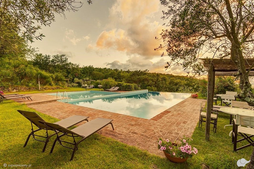 Widok na góry, winnice, gaje oliwne z posiadłości Podere La Casetta położonej w malowniczej miejscowości Montaione to doskonały pomysł na romantyczny wyjazd. Osoby, które otrzymają ten wyjątkowy prezent, spędzą 3 noce w niezależnym apartamencie lub pokoju 2-osobowym, gdzie będzie czekać na nich butelka wina na powitanie! To nie koniec atrakcji bowiem wezmą oni udział w specjalnej degustacja lokalnych win i toskańskich specjałów, skorzystają z uroków basenu latem i nasycą oczy pięknem toskańskiego krajobrazu. Atmosfera średniowiecznego Montaione, kieliszek wybornego wina i leżak potrafią wprowadzić w rytm radosnej, niczym niezmąconej kontemplacji…