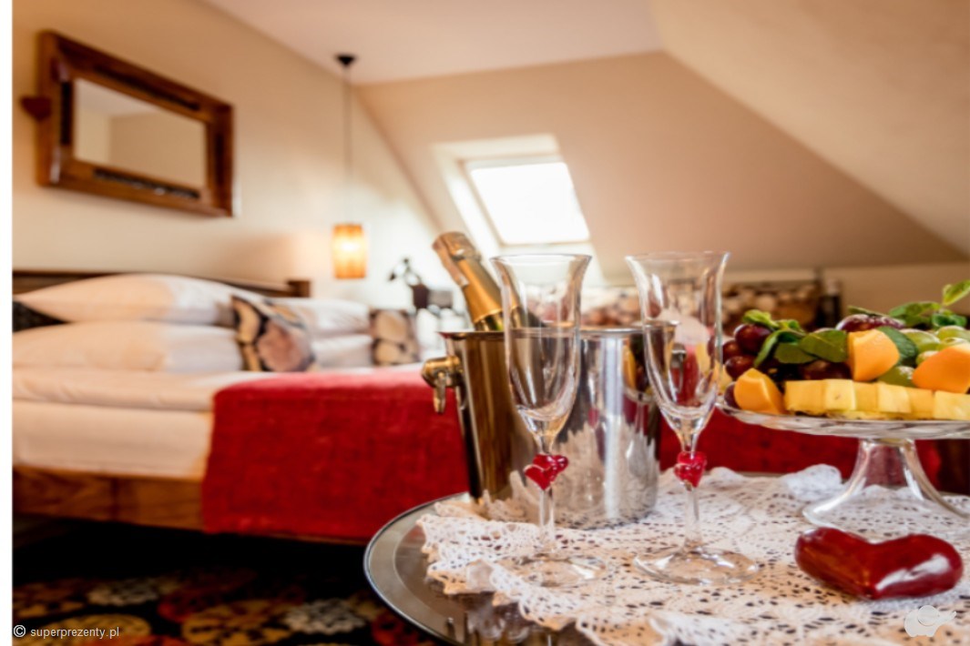 W Karczmie Rzym romantyzm nie jest tylko dekoracją – to motyw przewodni całego pobytu. Wnętrza inspirowane balladą Mickiewicza przeniosą Was w magiczny świat do nastrojowo urządzonego pokoju z jacuzzi, butelką wina musującego i owocami. Wieczorem uraczy Was trzydaniowa kolacja. Następnego dnia wzmocnicie siły obfitym śniadaniem, a niespieszny wyjazd pozwoli Wam dłużej celebrować chwile we dwoje!