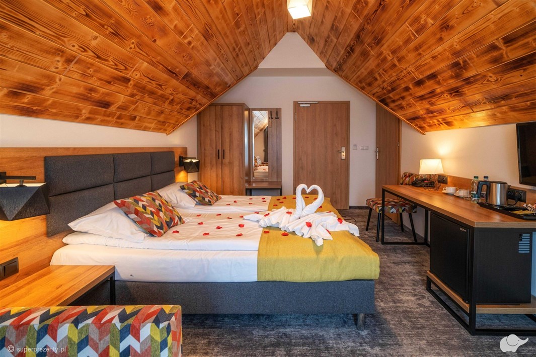 Tutaj czas płynie wolniej, a każda chwila jest warta opowiedzenia! Malinowy Potok przywita gości przytulnym pokojem o romantycznym wystroju i niespodzianką. Siły dwóm nocom błogiego relaksu przydadzą potrawy z hotelowej restauracji (śniadania i obiadokolacje), a odpręży nielimitowany pobyt w strefie wellness (basen, jacuzzi, sauny). Całość wieńczy wejście do słynnych Term Bania. To idealna okazja, by zatrzymać się, poczuć bliskość i na nowo pokochać wypoczynek w Tatrach!