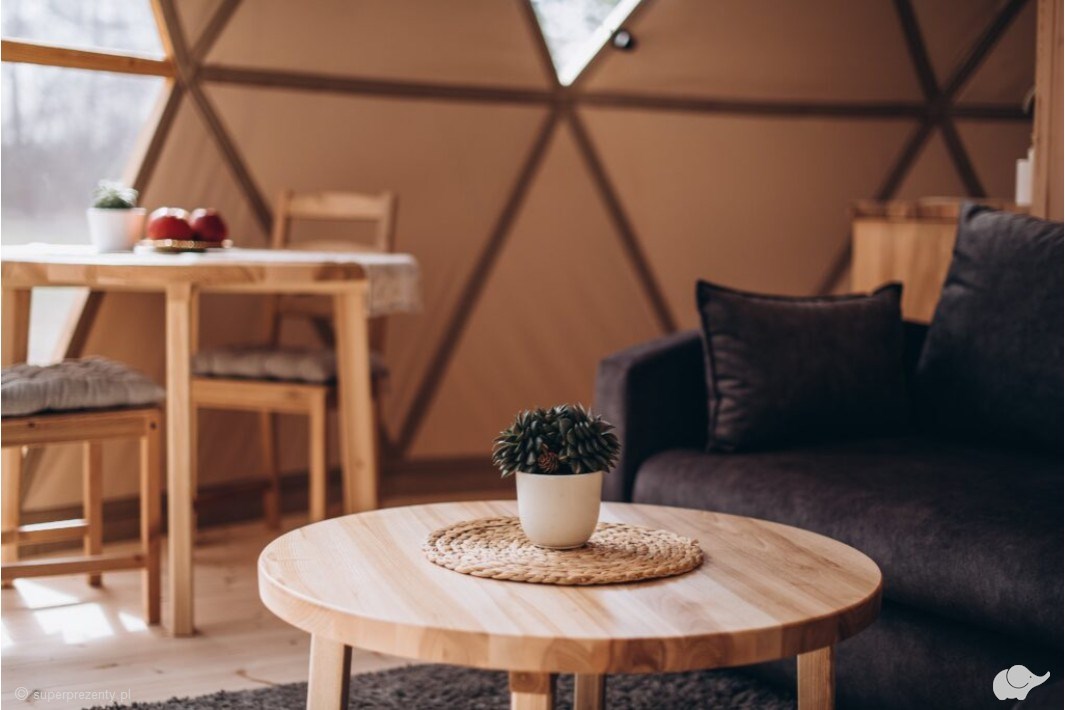 Wyobraź sobie poranek, kiedy budzą Was promienie słońca, a w tle słychać szum rzeki Verkne. Mała Kopuła, choć kameralna, oferuje pełen komfort z podgrzewaną podłogą, aneksem kuchennym i wygodnym łóżkiem. W ciągu dnia możecie wybrać się na kajakowy spływ, a wieczory spędzać przy blasku gwiazd na prywatnym patio. W tym magicznym miejscu, gdzie czas staje w miejscu, przeżyjecie niezapomniane chwile we dwoje.