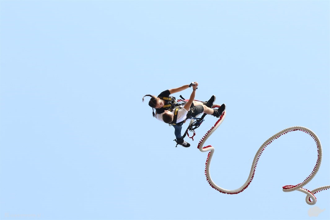 Marzysz o wielkich wyzwaniach i kochasz adrenalinę? Skok na bungee zapewni ci jej najwyższy poziom! Pokonaj swój strach i poczuj niezapomniane emocje a przy tym zobacz piękną panoramę Gdańska. Skok z 90-cio metrowego żurawia wieżowego przyprawi cię o zawrót głowy i dostarczy ci wrażeń, których nigdy nie zapomnisz! Samego uczucia związanego ze swobodnym spadaniem nie da się opisać - to po prostu trzeba przeżyć. Skok na Bungee to konkretna dawka adrenaliny, pozytywnej energii, a co najlepsze - nigdy się nie nudzi. Polecamy każdemu, jeśli nie ma przeciwskazań zdrowotnych, aby chociaż raz spróbował - to przeżycie na długo pozostanie w waszej głowie i sercu. Organizator stawia duży nacisk na bezpieczeństwo uczestników, dlatego używa najwyższej jakości produktów renomowanych firm, gwarantujących bezpieczeństwo skoczka. Zespół składa się z przeszkolonych osób, które przygotują Was do skoku i zrobią wszystko aby pomóc w podjęciu decyzji, tak aby skok był niezapomnianym przeżyciem. Na każdego skoczka czeka imienny certyfikat, potwierdzający oddanie skoku.