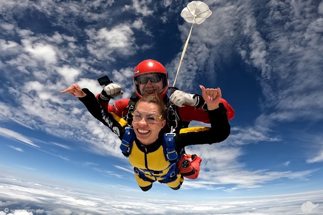 Podaruj komuś piękno i emocje w postaci jednego prezentu! Skok ze spadochronem to przeżycie nafaszerowane okrzykami ekscytacji oraz maksymalną dawką wolności. Tylko w powietrzu ktoś z Twoich ukochanych poczuje się w pełni doładowanym na wielu płaszczyznach; znakomite pejzaże wnikają do serca przez oczy, widok zbliżającej się ziemi przyspiesza oddech, a powietrze wydaje się masować ciało w trakcie spadania.