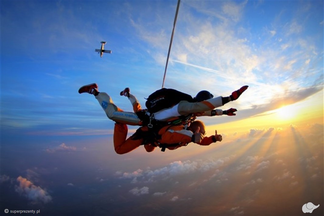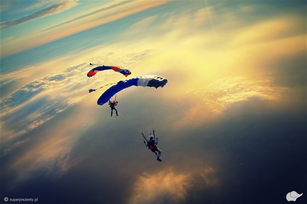 Poznaj prawdziwe oblicze swobody i ekstremalną dawkę adrenaliny w 60-sekundowej pigułce, próbując skoku spadochronowego. To wyjątkowe przeżycie, które na zawsze pozostanie w Twojej pamięci. Nie ma chyba niczego bardziej ekscytującego niż spadanie z 4000 metrów nad ziemią, z wiatrem we włosach i pięknymi widokami rozciągającymi się na horyzoncie. W trakcie opadania będąc na bezpiecznej wysokości, otworzy się spadochron, a Ty będziesz miał okazję, aby samodzielnie posterować czaszą spadochronową. Przed lądowaniem "tandem", pilot przejmie od Ciebie uchwyty sterownicze, a następnie miękko wyląduje.