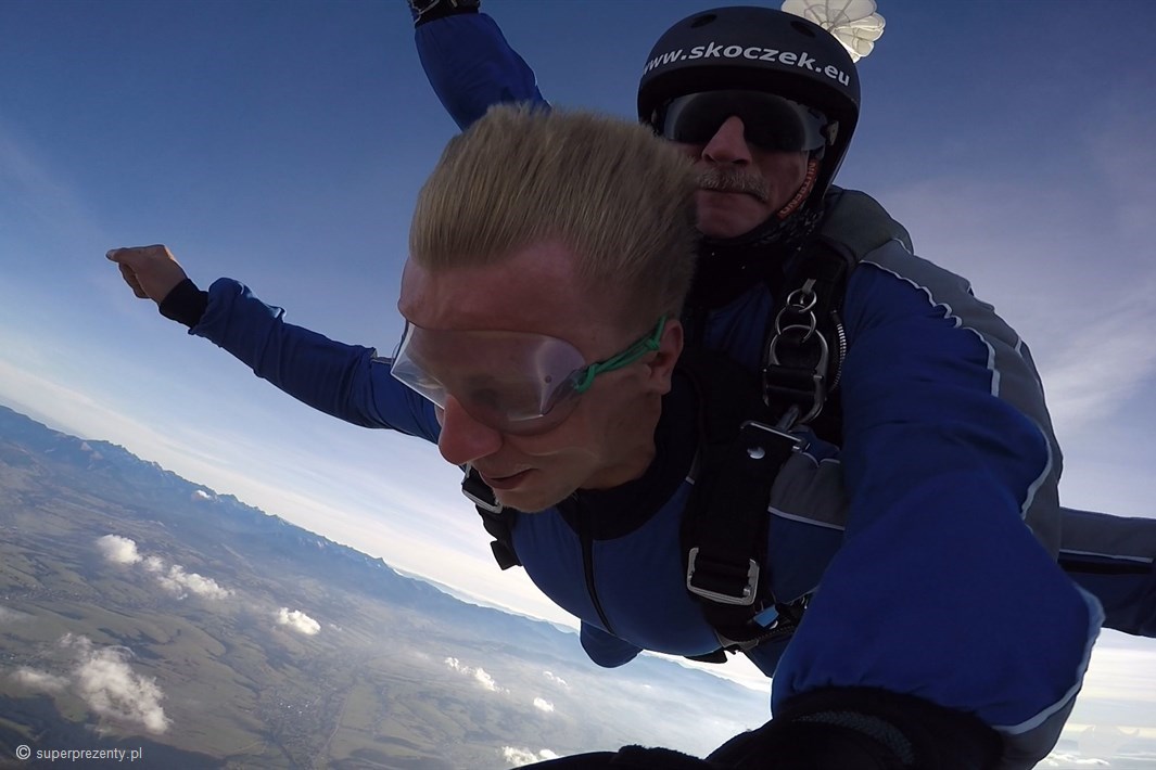 Co łączy odwagę, wolność i prędkość 200 km/h? Skok spadochronowy z 4 kilometrów! To nie tylko prezent – to historia, którą opowiada się latami. Po krótkim instruktażu uczestnik wejdzie na pokład samolotu i po ponad kwadransie lotu nad Tatrami opuści go w towarzystwie doświadczonego instruktora na wysokości 4000 metrów. Czeka go 45 sekund swobodnego spadania z prędkością 200 km/h, a następnie około 5-8 minut spokojnego szybowania na czaszy spadochronu. Cała przygoda kończy się miękkim i bezpiecznym lądowaniem.