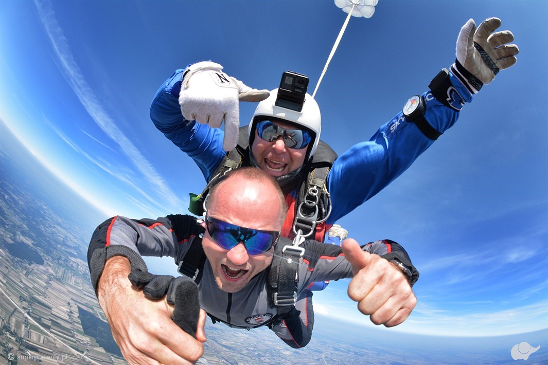 Skok w tandemie to niezapomniana przygoda. Nad Waszym bezpieczeństwem czuwają najbardziej doświadczeni instruktorzy w Polsce, więc nie musicie się o nic martwić. Wasze zadanie to dać się porwać podniebnej przygodzie, świetnie się bawić i delektować ekstremalną dawką adrenaliny. Pamiętajcie, że żyjemy dla wyjątkowych chwil, a ta bez wątpienia taką będzie 😊