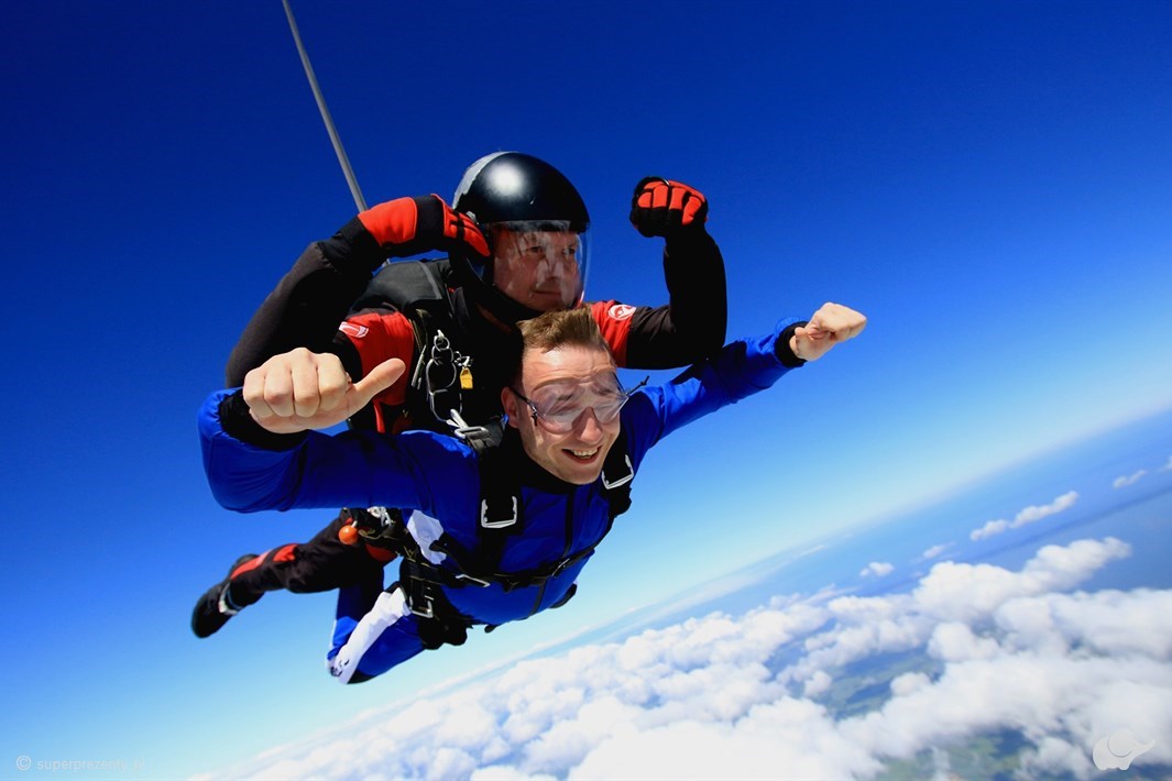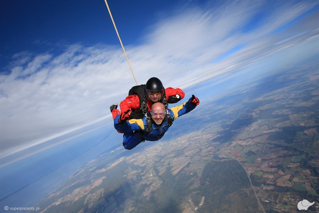 Sprezentuj bliskiej osobie skok ze spadochron w tandemie w Elblągu z filmem. Emocje na wysokości 4000 m, lot na otwartej czaszy i nagranie wideo od PL Strefa!