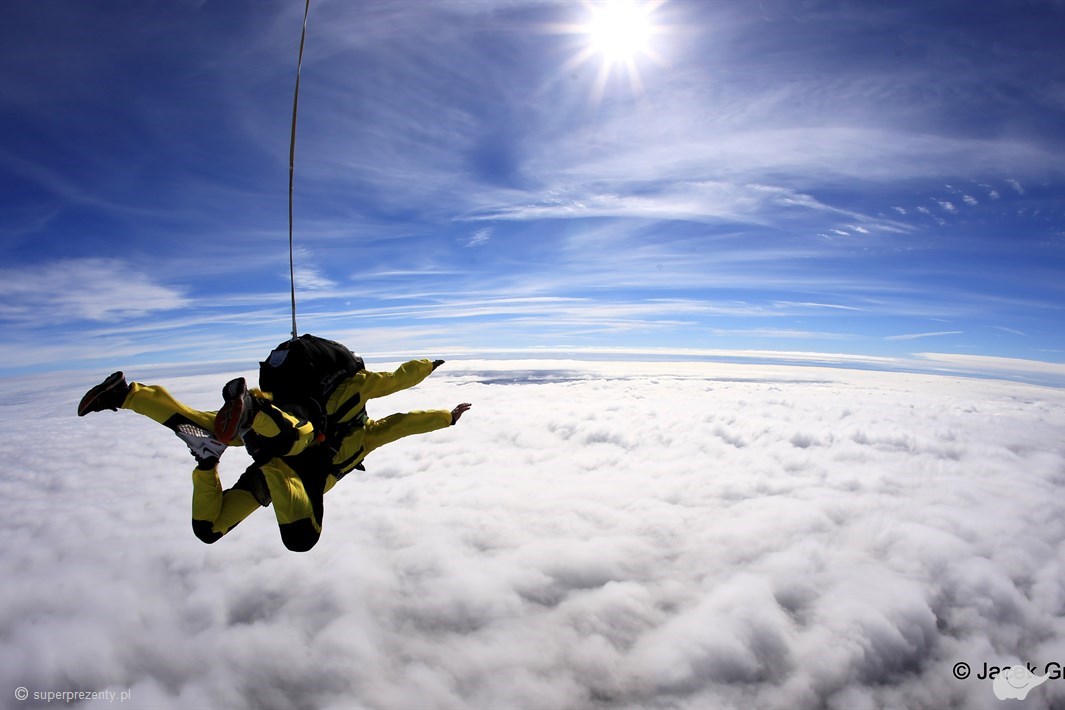 Marzysz, by podarować komuś niesamowite przeżycie, ale obawiasz się, że zapomni o niesamowitości tego przeżycia? Przychodzimy na ratunek zapominalskim! Dzięki skokowi spadochronowemu z nagrywaniem, osoba obdarowana może zarejestrować swoje przeżycie za pomocą kamery zamontowanej na kasku. Sam skok to istna podróż po niebiosach i szansa na nieziemską dawkę szaleństwa, które udekoruje ten ważny dzień lepiej niż większość tortów. Niech leci zgodnie z wolą natury i wrzeszczy z szaleństwa oraz ekscytacji!