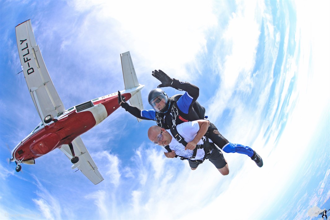 Skok tandemowy jest wykonywany z wysokości 4000 metrów, co daje możliwość pełnego doświadczenia swobodnego spadania z prędkością ponad 200 km/h. Swobodne spadanie trwa około 60 sekund!