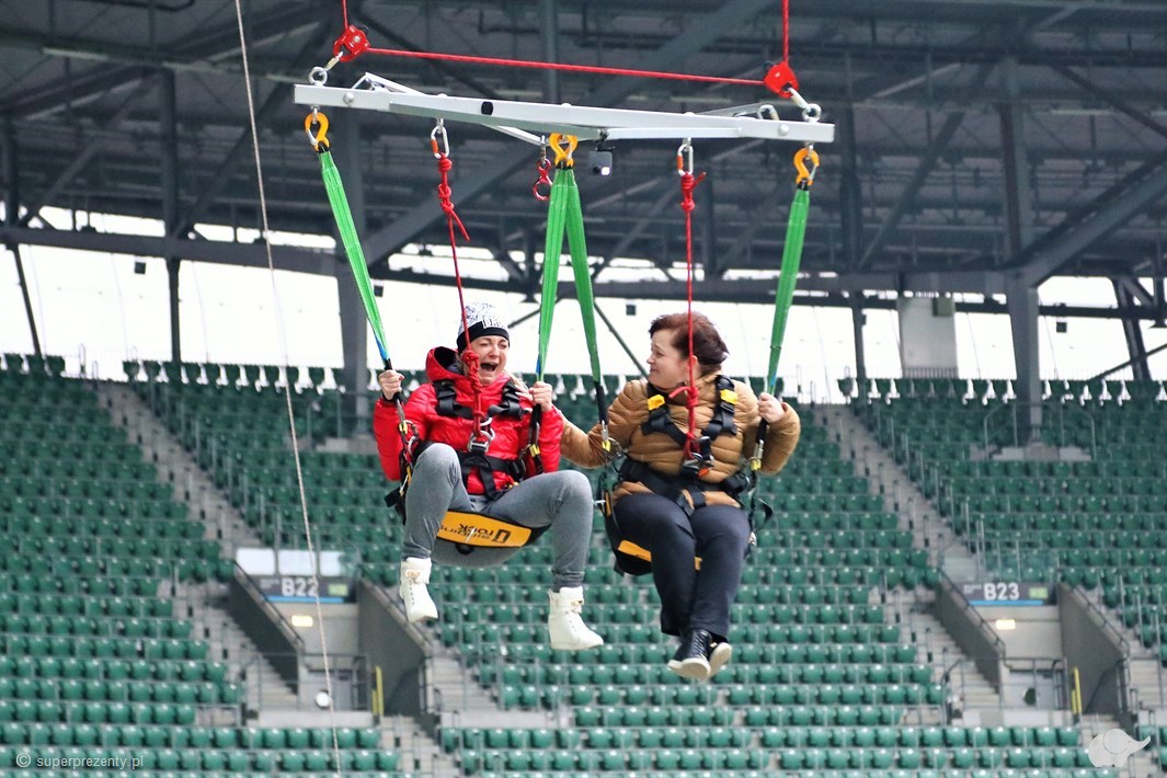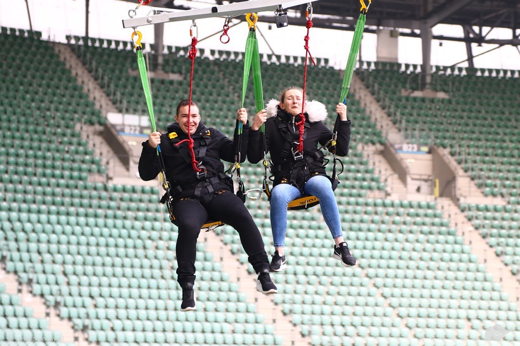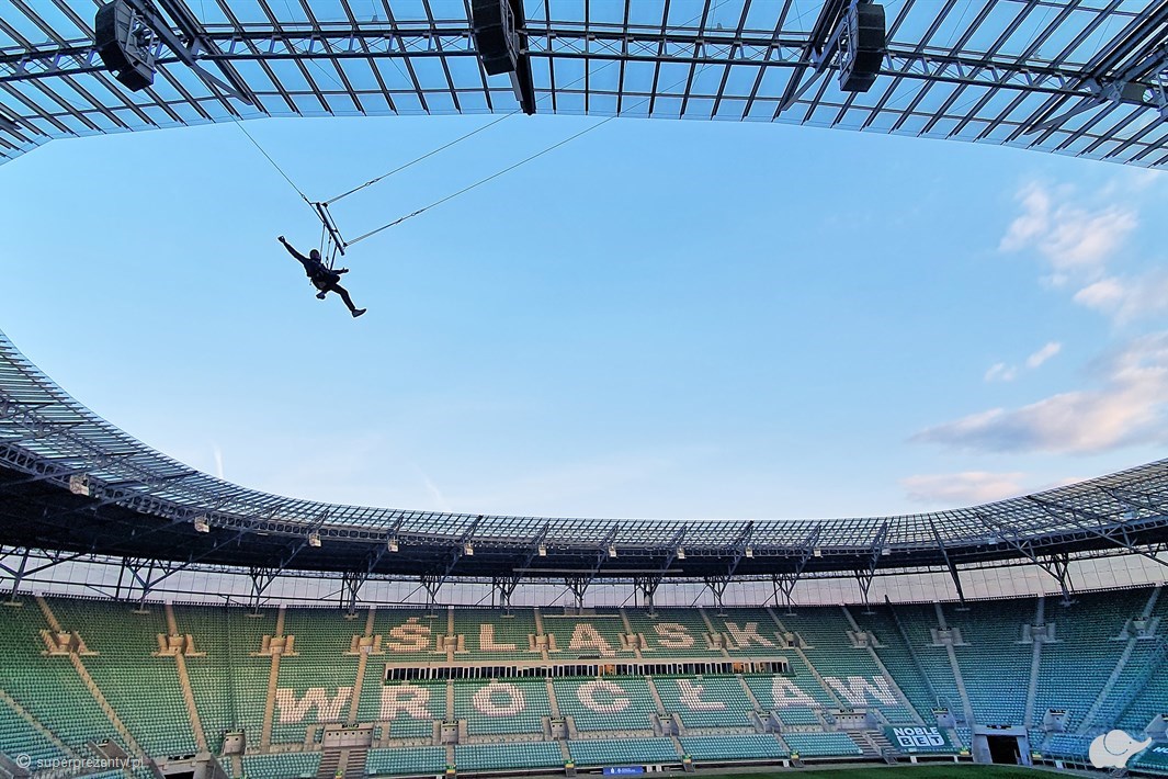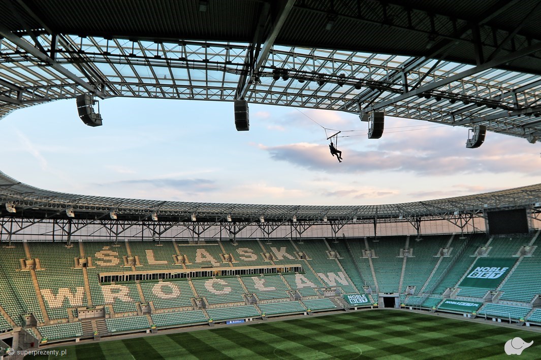 Skok wahadłowy z dachu stadionu dla Dwojga we Wrocławiu