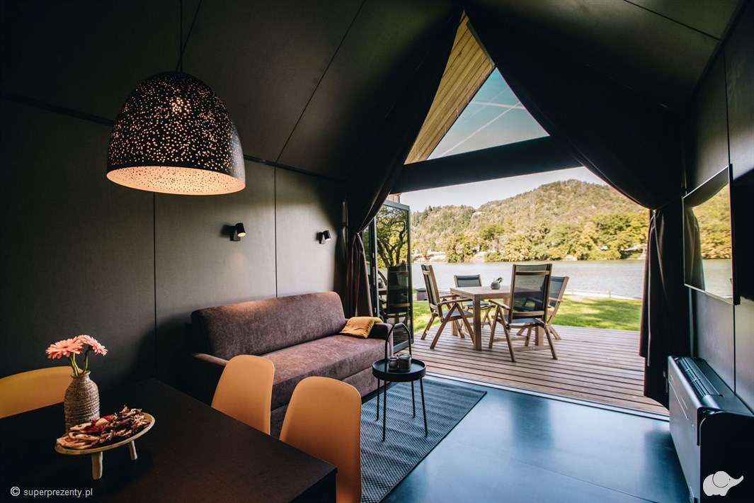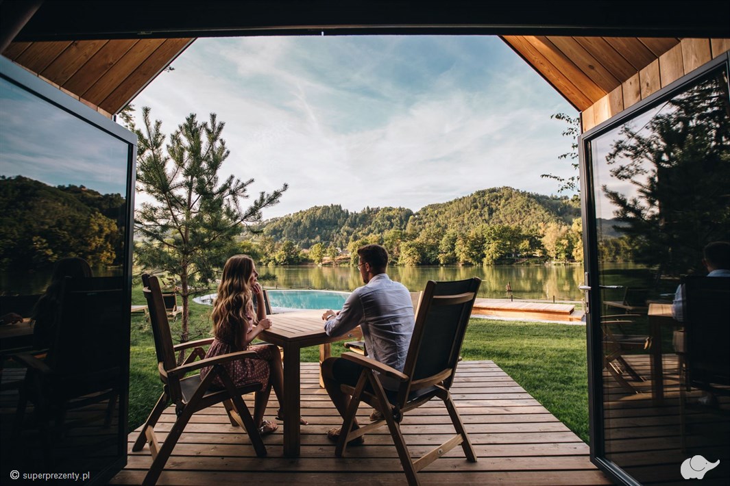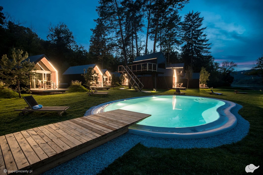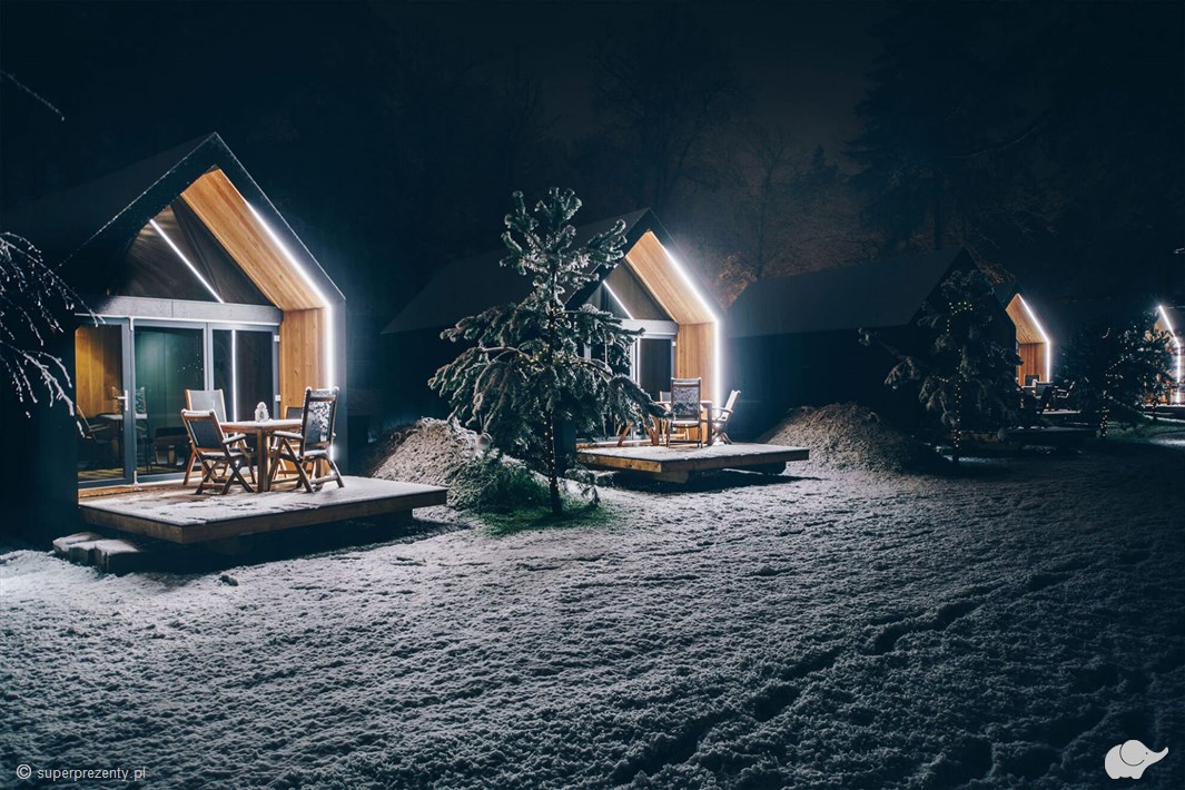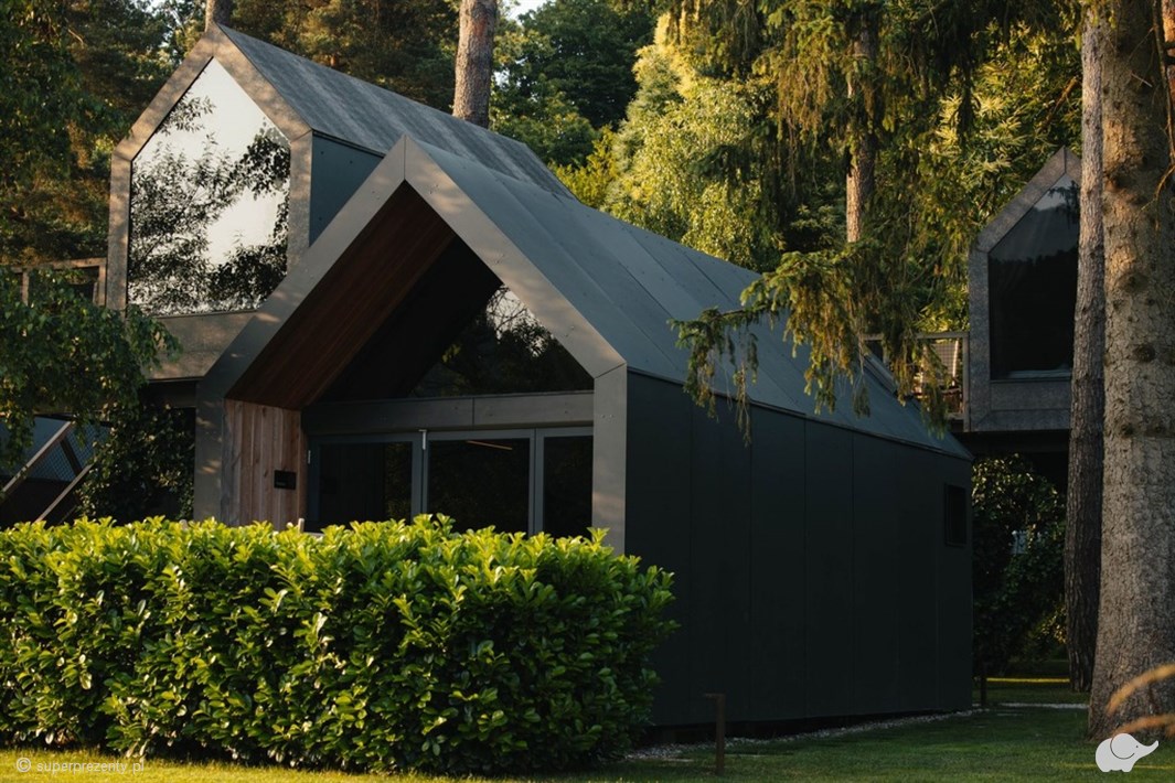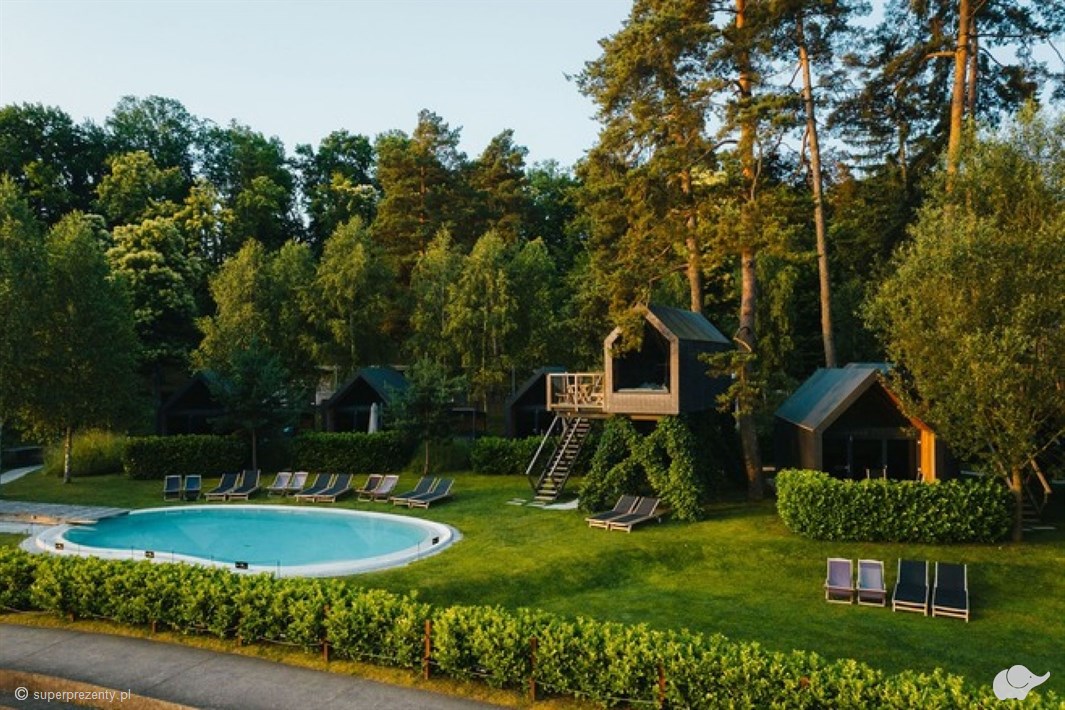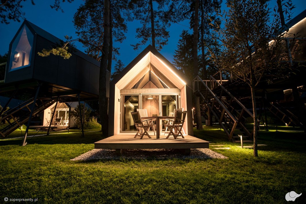 - luksus na łonie natury – nocleg w designerskich domkach (opcjonalnie z jacuzzi) w otoczeniu zieleni,
