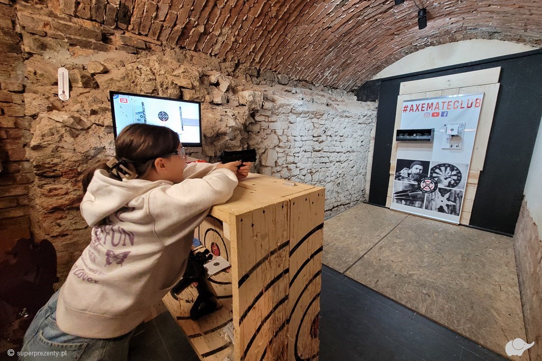 Axe Mate Club, mieści się w zabytkowej kamienicy w Krakowie po drodze do zabytkowej dzielnicy Kazimierza. Zróżnicowana oferta Axe Mate Club to nie tylko miejsce dostarczające rozrywki na największym poziome, ale też stwarzające warunki do rywalizacji sportowej w różnych dyscyplinach. Tutaj podszkolicie posiadane umiejętności lub nauczyć się ich od podstaw. Wśród dostępnych aktywności znajdziecie rzuty: shurikenem, nożem sportowym, lotkami (Dart), mix aktywności oraz łucznictwo. Niektórzy z uczestników Axe Mate club zostają zawodnikami światowej ligi WATL, której członkiem jest Axe Mate Club.