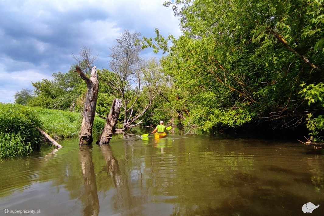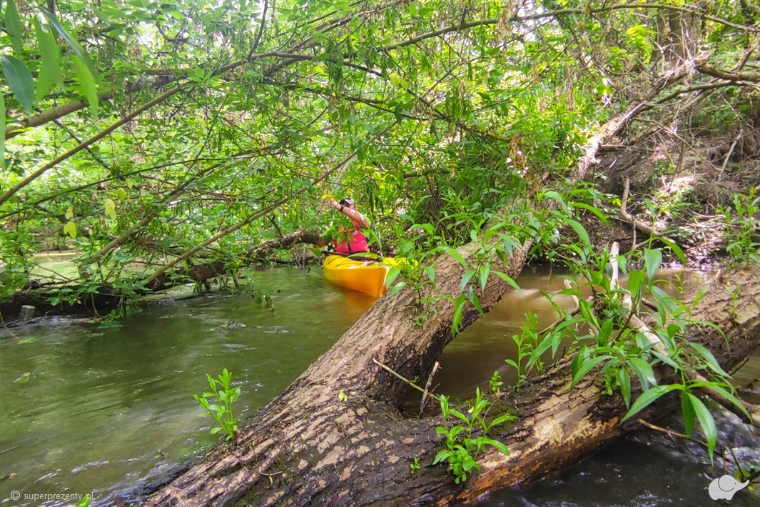 Oferowany spływ to połączenie Zielonej i Czerwonej Trasy. Pierwsza z nich biegnie z dala od dróg oraz domów i jest świetnym początkiem, w którego trakcie możesz chwilę się zrelaksować i oswoić z kajakiem. Po jej przepłynięciu rozpoczyna się drugi odcinek trasy, czyli Trasa Czerwona. To dziki, nieuregulowany odcinek rzeki z licznymi łamigłówkami na wodzie. Kamienna płynie wśród pięknych zagajników, łąk i lasów. Trasa jest bardzo urozmaicona i przynosi ogromną satysfakcję wraz z pokonywaniem kolejnych przeszkód. Ponadto, jest to odcinek o dużej aktywności bobrów. To świetna opcja dla osób lubiących spalić w kajaku trochę kalorii i jednocześnie poczuć się jak w amazońskiej dżungli.