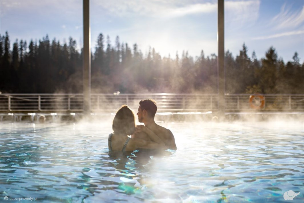 Woda, w której zanurzą się odbiorcy vouchera, ma ponad 10 000 lat. Ale to nie jedyny jej walor. Wydobywana z głębi i bogata w siarczany, sód i wapno jest prawdziwym eliksirem zdrowia i młodości! Zimą, gdy mróz szczypie policzki, a obdarowani zanurzą się w gorącym basenie o temperaturze do 38°C, patrząc na ośnieżony świerkowy las – uwolnienie poczują nie tylko mięśnie, ale i wyobraźnia! Relaks w termach dla dwojga to celebrowanie dzikiej przyrody Podhala w samym sercu Tatr w komfortowych warunkach!