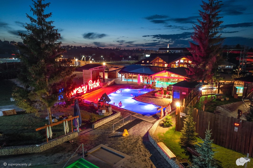 Termy Gorący Potok – to nowoczesny kompleks basenów termalnych mieszczący się na Podhalu. Na terenie obiektu znajduje się kilkanaście unikalnych basenów zewnętrznych z naturalną, surową wodą siarkową. Do dyspozycji gości udostępnionych jest 21 niecek basenowych o różnej charakterystyce fontanny, masaże wodne i gejzery, zjeżdżalnie oraz strefa dziecięca. Baseny napełnione są siarkową wodą termalną o temperaturze 34-40°C, dlatego nawet w zimowe dni można doświadczyć tu niepowtarzalnego relaksu. Oprócz tego znajduje się tutaj odprężająca strefa saun, a także strefa SPA oferująca m.in. kąpiele w nieckach z wodą o zwiększonej zawartości siarki, kąpiele borowinowe, masaże i zabiegi kosmetyczne. Termy Gorący Potok to fantastyczne miejsce o magicznym klimacie, gdzie każdy znajdzie coś dla siebie!