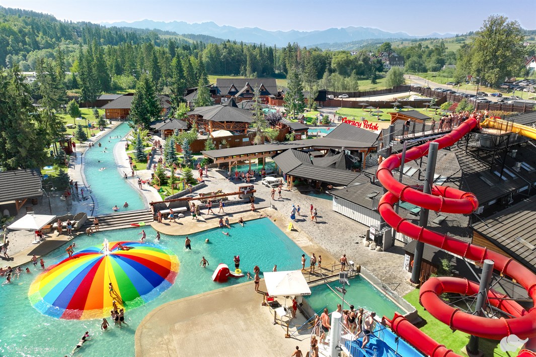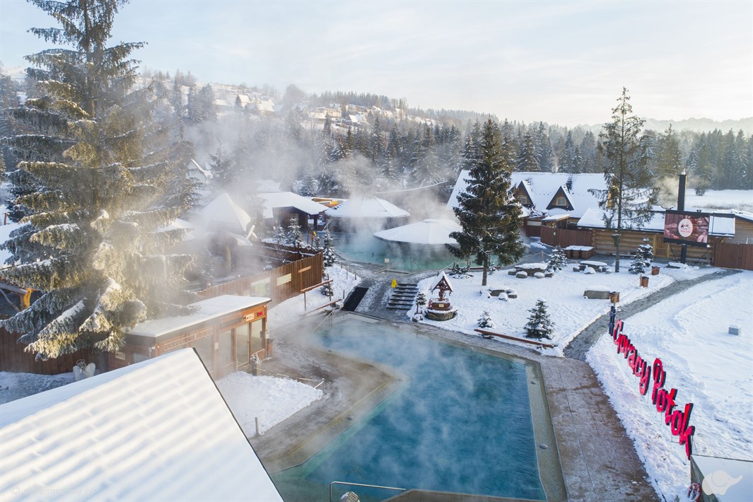 Termy Gorący Potok – to nowoczesny kompleks basenów termalnych mieszczący się na Podhalu. Na terenie obiektu znajduje się kilkanaście unikalnych basenów zewnętrznych z naturalną, surową wodą siarkową. Do dyspozycji gości udostępnionych jest 21 niecek basenowych o różnej charakterystyce fontanny, masaże wodne i gejzery, zjeżdżalnie oraz strefa dziecięca. Baseny napełnione są siarkową wodą termalną o temperaturze 34-40°C, dlatego nawet w zimowe dni można doświadczyć tu niepowtarzalnego relaksu. Oprócz tego znajduje się tutaj odprężająca strefa saun, a także strefa SPA oferująca m.in. kąpiele w nieckach z wodą o zwiększonej zawartości siarki, kąpiele borowinowe, masaże i zabiegi kosmetyczne. Termy Gorący Potok to fantastyczne miejsce o magicznym klimacie, gdzie każdy znajdzie coś dla siebie!