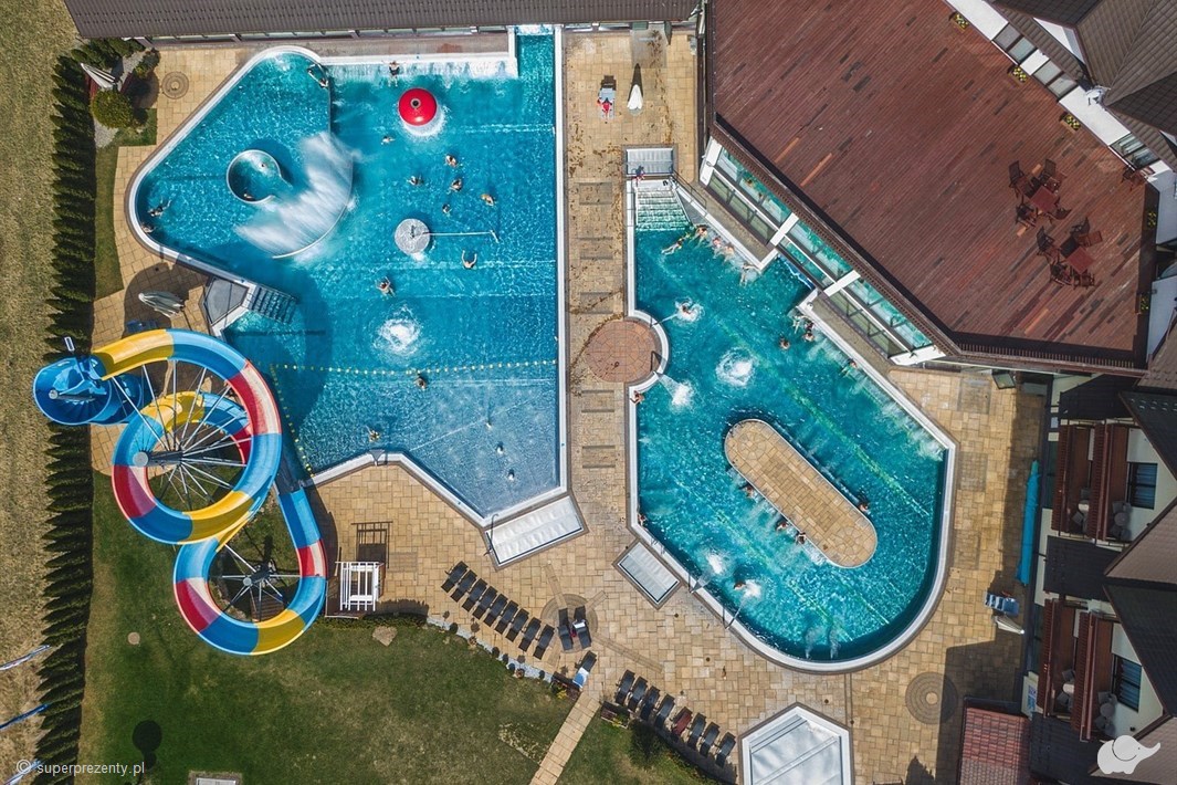 Termy Szaflary to wyjątkowe miejsce rekreacji i wypoczynku z basenami termalnymi i komfortowymi apartamentami. Oferują relaks na najwyższym poziomie. Baseny wypełniono ciepłą wodą termalną o temperaturze 30°C -38°C, a sam kompleks posiada liczne urządzenia do hydromasażu, takie jak bicze wodne, ławki do masażu, jeżyki i gejzery. Baseny są dostosowane do potrzeb zarówno najmłodszych, dzięki brodzikowi z zjeżdżalnią Słonikiem, jak i tych chcących zażyć szalonej zabawy na zjeżdżalniach o różnej długości nawet do 55 metrów. W okresie letnim na użytkowników czeka także basen z Aqua zorbingiem i łódeczkami. Termy Szaflary to idealne miejsce nie tylko wypoczynek, ale i regenerację organizmu. Znajdujące się w wodzie składniki mineralne, takie jak potas, sód, magnez, wapń, żelazo i siarka przekładają się na liczne korzyści zdrowotne – redukcję otyłości, eliminację bezsenności, stabilizację tętna, poprawę kondycji układu krążenia, czy redukcję bólu głowy i stresu. Spędźcie relaksujący pobyt w Termach Szaflary, gdzie komfort i przyjemność są na pierwszym miejscu.