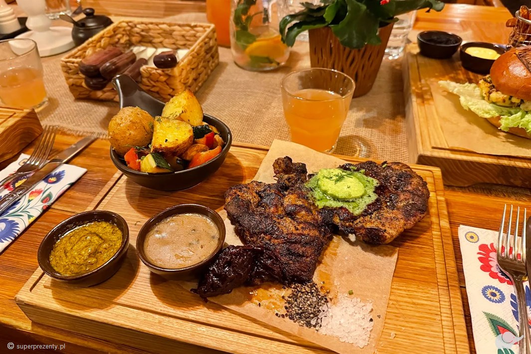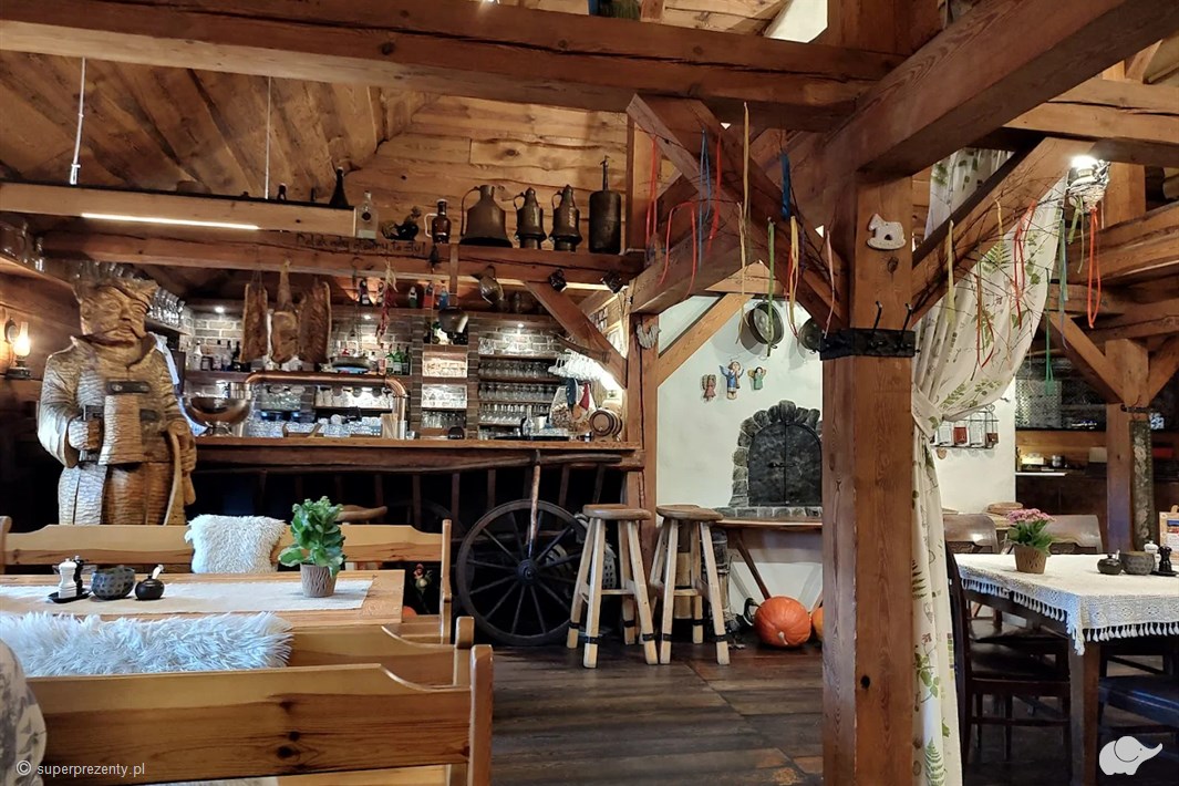 Opar dawnych lat, miłość do polskiej kuchni i muzyka grana przez kapelę ludową na żywo w weekendy stworzą idealne tło dla kulinarnej uczty we dwoje. Obdarowani wybiorą trzy dania z autorskiego menu – będą to specjalnie przygotowane: zupa, danie główne, deser do wyboru, napój zimny i gorący, karafka białego bądź czerwonego wina. Nie traćcie głowy jak butelka korek! Gwarantujemy, że biesiada zostanie w pamięci obdarowanych dłużej niż ostatni łyk białego i czerwonego wina!
