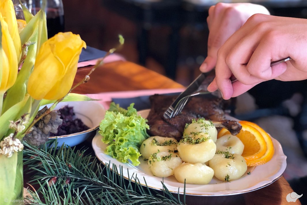 Obdarowana tym prezentem para uda się w kulinarną podróż do przeszłości przyprawioną nutą luksusu. Na kolację w dworskim stylu składa się trzydaniowe dzieło kulinarnej sztuki, przygotowane przez mistrzynię kuchni – Panią Elżbietę, której bigos chwali sama Magda Gessler. Dania z dworskiego menu zachwycają wyjątkowym smakiem i estetyką, co pozwala delektować się z każdym kęsem. Eventy kulinarne w Dworze Gogolewo absorbują klasyczną ponadczasowością, przywodząc na myśl rodzinne obiady w gronie najbliższych.