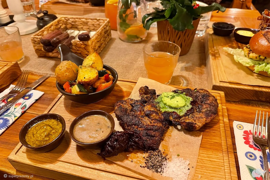 Uczta może rozpocząć się efektownie – kieliszkiem prosecco pobudzającym kubki smakowe. Celebrację smaków rozbudzi tatar – w wersji z łososia, klasycznej wołowej lub pomidorowo-bazyliowej. Zupa? Żur kujawski z jajkiem i kiełbasą albo krem z pieczonej papryki. Na danie główne polecają się szaszłyk z dzika, kruche zrazy, raki w aksamitnym sosie lub pierogi z pistacjami. A na deser – suflet czekoladowy z konfiturą i lodami lub klasyczne, pachnące ciasto prosto z pieca!
