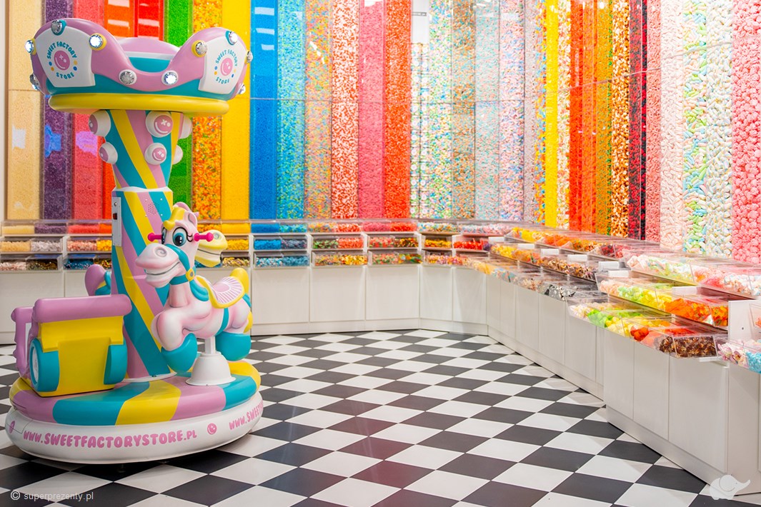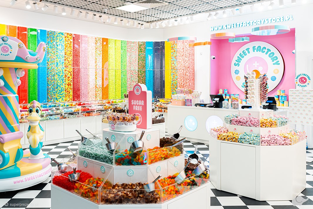 Sweet Factory Store to najsłodszy ze sklepów ze słodyczami. W jego ofercie znajdują się kolorowe produkty z całego świata: żelki, pianki marshmallow, krówki, wata cukrowa, czekoladki, lizaki oraz słodycze bezglutenowe, wegetariańskie i bezcukrowe. Klienci mogą wybierać gotowe zestawy prezentowe lub samodzielnie komponować słoiczki pyszności o różnych pojemnościach. Sieć liczy 31 lokalizacji w całej Polsce, a historia marki rozpoczęła się w Sopocie. Miłośnicy smakowitości w każdym wieku