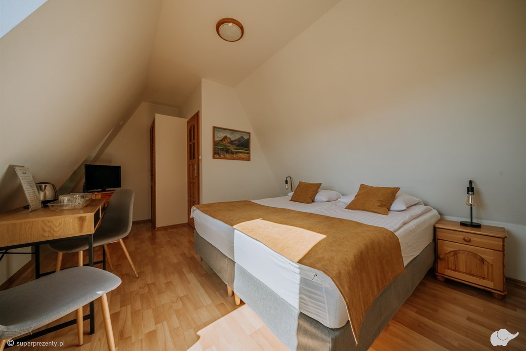 Sprezentujcie sobie wczasy tam, gdzie czas traci znaczenie, a szarość przemykająca po sercu zanika pod ciężarem pozytywów haftowanych szydełkami natury. Bańska Wyżna nie tylko zachwyca zawiedzionych, zaciekawia znudzonych, rozczula opanowanych i zbliża zdystansowanych, ale przede wszystkim udowadnia zakochanym, że mogą kochać jeszcze bardziej. Klimatyczne miejsca pełne romantycznych akcentów są tu rozsiane jak krwistoczerwone maki na urodzajnej glebie, a w samym środku tego mrowia powodów do beztroski znajduje się Dom Wypoczynkowy u Staszla – soczysty słodycz o smaku wytchnienia dla serc przyduszonych goryczą codziennych zgryzot. Właściciele tego uroczego lokum stawiają głównie na naturalność, lecz nie uświadczycie tu choćby krzty banału. Pokoje urządzono z klasą, ale nie zapomniano o tym, aby goście czuli się tu „lepiej niż gdziekolwiek indziej” wiedząc jednocześnie, że sfera wizualna jest ważnym, lecz niejedynym czynnikiem decydującym o pełnym komforcie. Dodatkowo sauna i jacuzzi wynagrodzą Wam zmęczenie spowodowane całodziennym spacerom po krętych ścieżkach, okolicznych parkach i wspaniałych lokalach. Dom Wypoczynkowy u Staszla to magia fuzji bajecznej miejscowości ze wspaniałym hotelikiem. Teleportujcie swoje dusze do miejsca wyrwanego z bajki - tutaj człowiek zdaje sobie sprawę, że czasem trzeba zwolnić, aby uciec od pośpiechu.