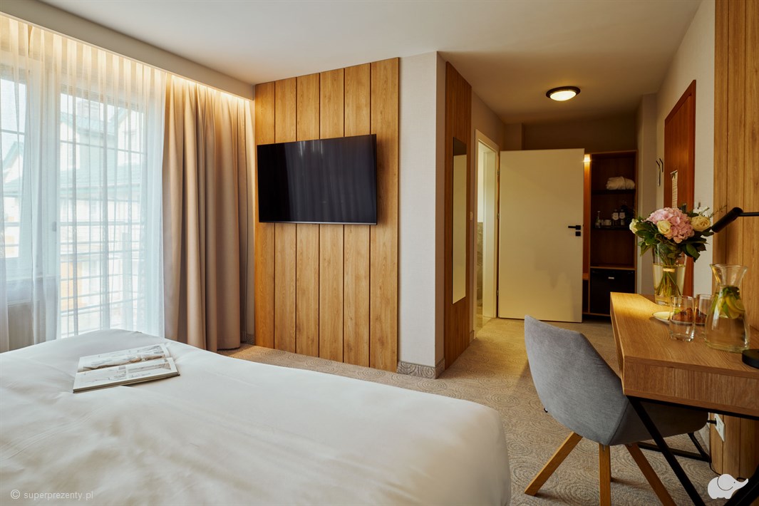 Na realizację zabierz ze sobą voucher.Vouchery nie obowiązują w okresie letnim (lipiec- sierpień), ani w okresach specjalnych (Wielkanoc, majówka, Boże Ciało, Boże Narodzenie, Sylwester).Hotel ma prawo odmówić rezerwacji w danym terminie i zaproponować inny.Zmiana rezerwacji możliwa jest tylko po uprzednim kontakcie z hotelem i za zgodą hotelu.Warunkiem dokonania rezerwacji jest kontakt mailowy z hotelem.Hotel oferuje udogodnienia dla niepełnosprawnych (po uprzednim kontakcie).W przypadku niepojawienia się gości w hotelu zgodnie z dokonaną rezerwacją, rezerwacja będzie trzymana do dnia następnego do godz.12.00-po tym czasie rezerwacja zostaje anulowana, a voucher uznaje się za zrealizowany.Istnieje możliwość skorzystania z zabiegów ze strefy spa, informacje i zapisy bezpośrednio w hotelu.