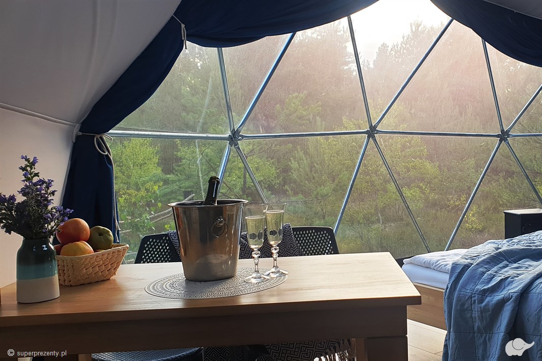 Glamping Podniebny to obiekt wypoczynkowy mieszczący się w miejscowości turystycznej Borsk na Kaszubach nad Jeziorem Wdzydzkim. Ośrodek składa się z 5 namiotów sferycznych, z czego jeden posiada gorącą banię, a dwa prywatną saunę beczkę. Glamping znajduje się na skraju trawiastego lądowiska, dawniej lotniska wojskowego, które obecnie wykorzystywane jest sportowo głównie przez paralotniarzy. Z drugiej strony, ośrodek otacza las, a wokół znajdują się mniejsze, ustronne jeziorka oraz rzeka Wda. Jeśli ktoś poszukuje spokoju i bliskiego kontaktu z naturą, to znajdzie to właśnie w tym miejscu.