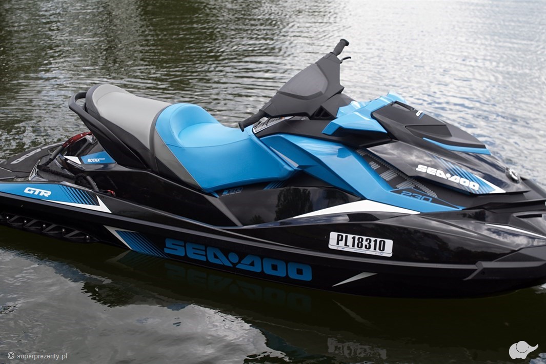 Pokaż komuś bliskiemu, że nudzie trzeba dokręcić śrubę, a do nauki tej sztuki przyda się… śruba skutera wodnego! Voucher na jazdę skuterem wodnym to doskonały pomysł na prezent dla chłopaka, męża, a nawet kobiety zakochanej w sportach wodnych. Morska pierzyna łączy swoje animatorskie właściwości z ludzkim geniuszem konstrukcyjnym, by wystrzelić kogoś z Twoich bliskich na planetę pokrytą pozytywnym wodnym szaleństwem. Do dyspozycji, wraz ze sternikiem, jest skuter wodny SEA-DOO GTR 230 o mocy 230 KM. Osoby posiadające uprawnienia mogą samodzielnie wynająć skuter po odbyciu szkolenia.