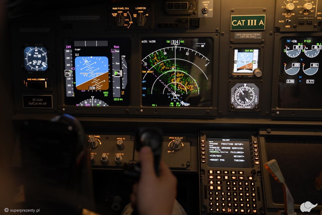 Symulator działa na podstawie jednej z najbardziej zaawansowanych technologii dostępnych w Europie. Wizualizacje generowane przez laserowe projektory wyświetli gigantyczny 8-metrowy ekran. W kabinie odwzorowanej 1:1 z prawdziwym kokpitem znajdują się w pełni funkcjonalne panele, identyczne z tymi, z których korzystają zawodowi piloci. Można sterować samolotem, zarządzać komunikatami pokładowymi i poczuć, co naprawdę znaczy „mieć kontrolę”!