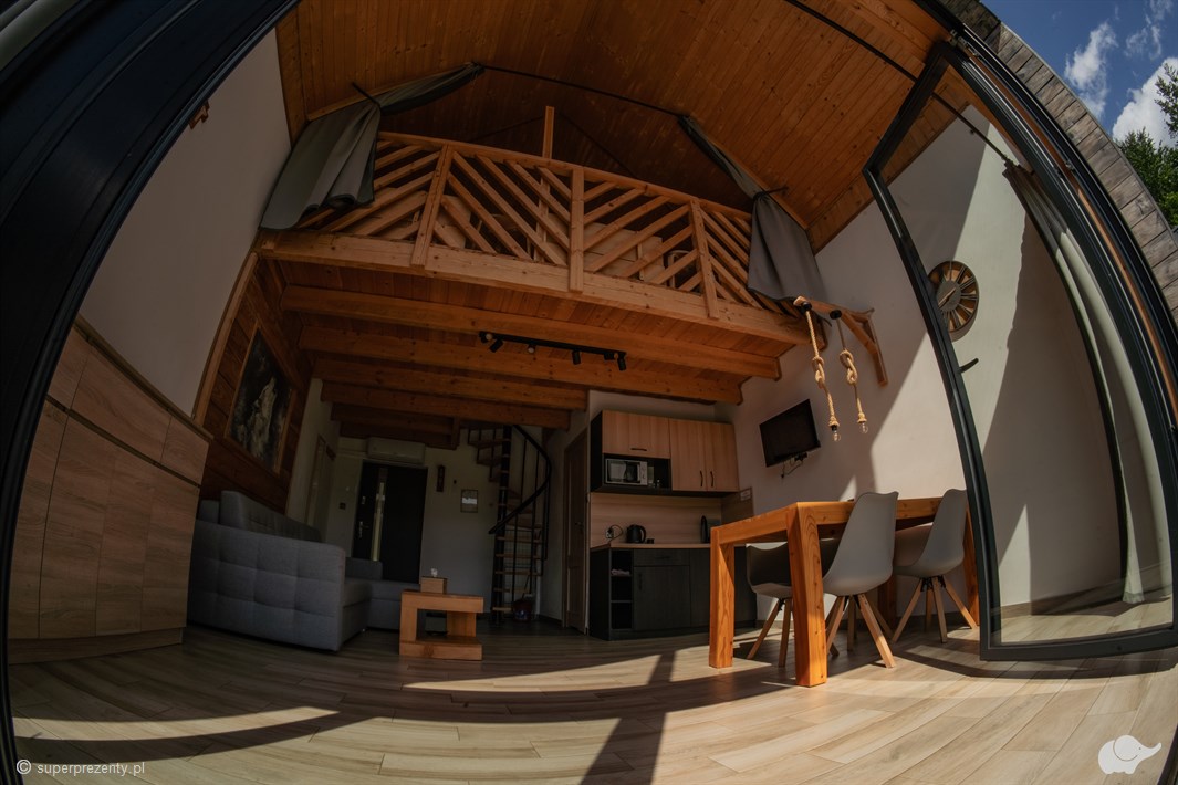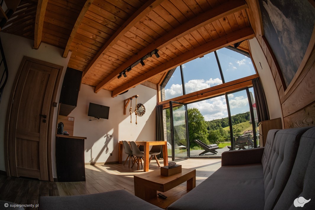 Luksus, choć widoczny jeszcze przed otwarciem drzwi, najbardziej zachwyci Was po przekroczeniu progu i ujrzeniu dużego salonu z wielką przeszkloną ścianą, pełniącą rolę okna oraz punktu widokowego na wielobarwne bieszczadzkie pejzaże. Wnętrze budynku zostało zaprojektowane z myślą o gościach wymagających czegoś więcej od wypoczynku; nie ma tu sztucznych obić czy przypadkowych elementów. Nawet najdrobniejsze detale są owocami szczegółowego projektu.