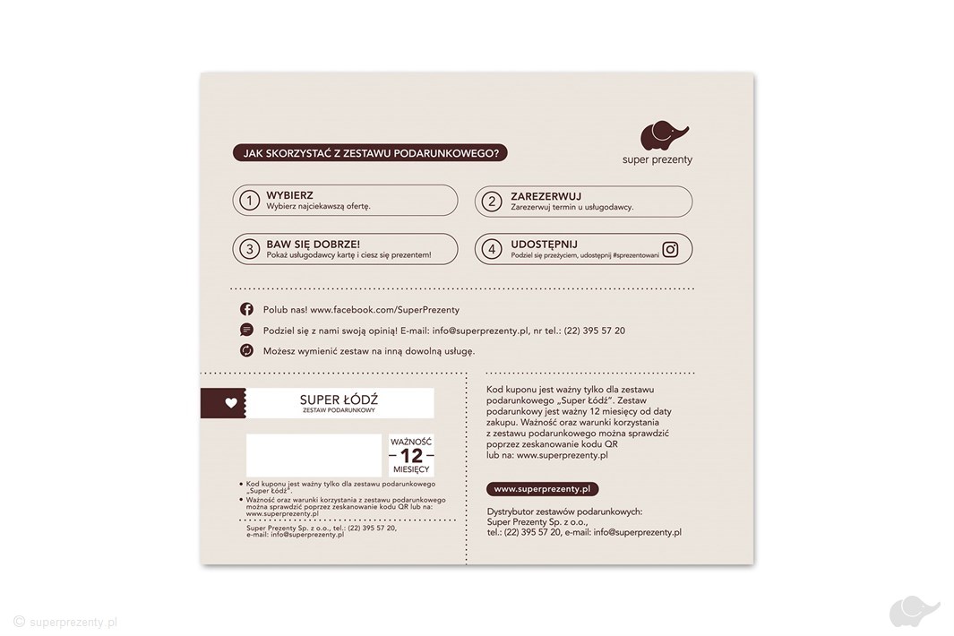 Postaw na swobodę realizacji! W sekcji dotyczącej produktów własnych Super Prezentów odnajdziesz zestawy podarunkowe, karty wielokrotnego użytku, bony i vouchery kwotowe, a nawet miejskie karty podarunkowe. Wspólną cechą każdego z wymienionych produktów jest najwyższy komfort podczas korzystania z prezentu; osoba obdarowana nie jest ograniczana do konkretnej aktywności, a wręcz odwrotnie – samodzielnie (i w najróżniejszy sposób) zadecyduje o tym, na jakie przeżycia zostanie przeznaczony podarunek.