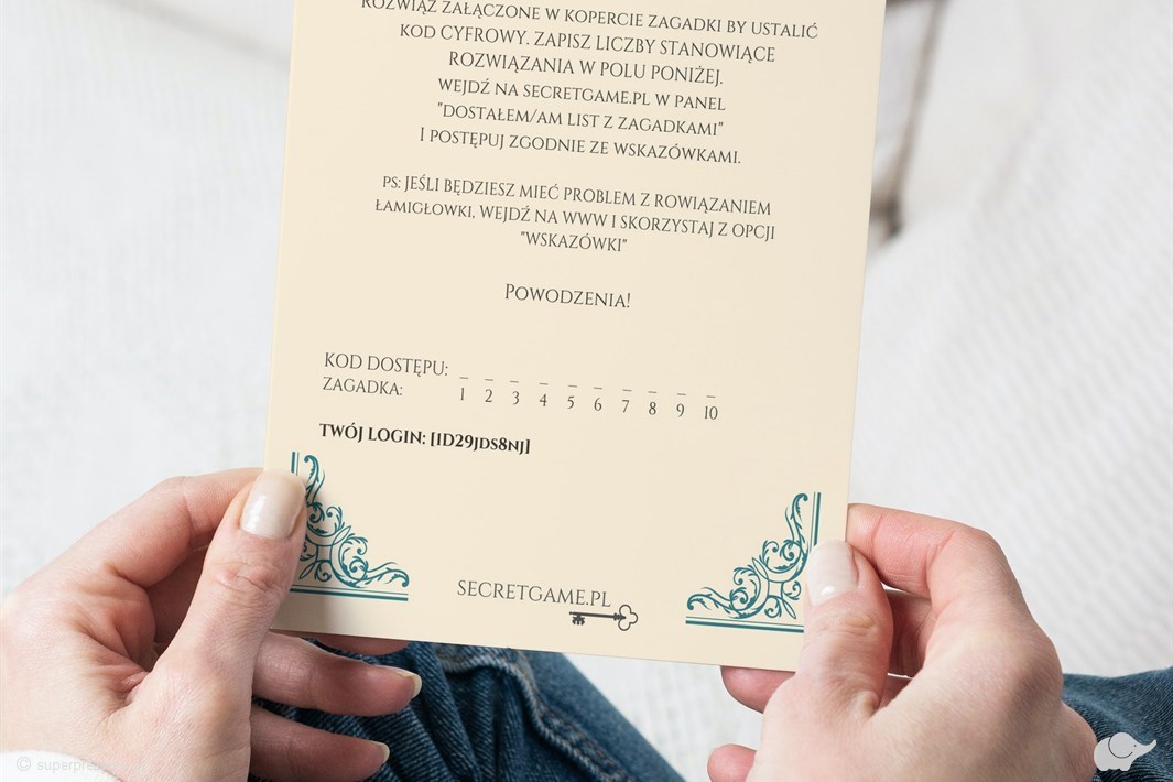 To prezent dla wszystkich fanów i fanek intelektualnych roszad, łamigłówek, spostrzegawczości i sprytu! Prześlij wybranej osobie zestaw zagadek – 10 pięknych kart wraz z listem przewodnim, który w przystępny sposób wyjaśnia działanie secretgame.pl. Po ich odszyfrowaniu adresat będzie mógł odczytać Twoją sekretną wiadomość. Zagadki mają różny stopień trudności. Jeżeli zajdzie taka potrzeba odbiorca vouchera, będzie mógł/a skorzystać z dostępnych podpowiedzi i odpowiedzi.