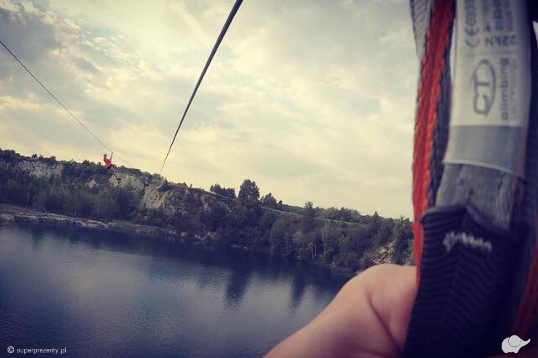 Osobę obdarowaną voucherem czekają piękne widoki z wysokości 11 piętra i spora doza adrenaliny. Zjazd popularną tyrolką realizowany jest na rozciągniętej nad jeziorem linie, do której uczestnik zostanie podpięty za pomocą specjalnej uprzęży i dodatkowo założy kask. Stalowa lina ma długość pół kilometra i tę odległość pokona odbiorca vouchera, wisząc na wysokości 30 metrów nad taflą Jeziora Balaton. Możesz podarować mu 1 lub 2 zjazdy. Przed zjazdem czeka ją przygotowanie, szkolenie, ewentualne zdjęcia (we własnym zakresie), co trwa około 10-15 minut, a sam zjazd to 90 sekund czystych emocji!
