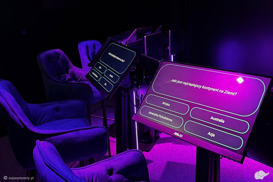 Quiz Game Arena Warszawa to innowacyjne centrum rozrywki znajdujące się w Centrum Handlowym Blue City, które przenosi uczestników w świat popularnych formatów telewizyjnych. Firma specjalizuje się w organizacji interaktywnych teleturniejów, oferując w pełni wyposażone pokoje studyjne z multimedialną oprawą audiowizualną. Rozgrywka prowadzona jest przez wirtualnego hosta, a uczestnicy korzystają z indywidualnych pulpitów dotykowych. Lokale są otwarte 7 dni w tygodniu i przygotowane do obsługi zarówno małych grup, jak i większych imprez do 30 osób. To nowoczesna alternatywa dla kina czy kręgli, stawiająca na integrację i emocje!
